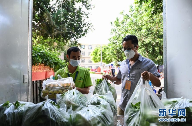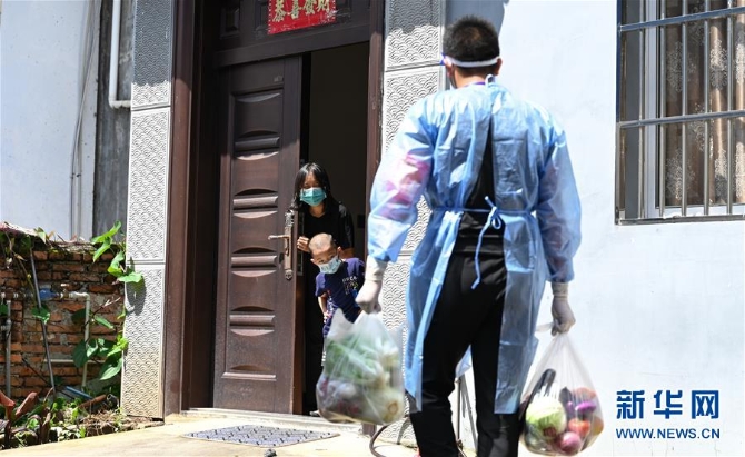 7月8日,友谊社区的网格员将生活物资送至居民家。新华社记者 王冠森 摄