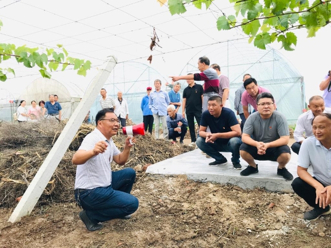 在丹徒区江心洲五墩村的一处田头长廊里,丹徒区农业农村局高级农技师凌须美正在给村民们传授葡萄种植技术,农户们在熟悉的田间地头站着听、蹲着听,学得津津有味。长廊外是一片枝繁叶茂的葡萄种植园。将课堂搬到田间地头,把党史知识和助农科技一并送到农户手中,“田间课堂”受到农民的欢迎。