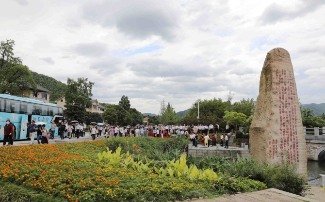 游客在浙江省安吉县余村参观。