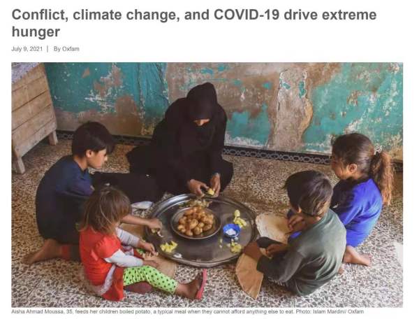 国际扶贫发展机构乐施会当地时间9日发布题为《“饥饿病毒”成倍增长》的最新报告指出,冲突、新冠肺炎疫情和气候变化等因素正在加剧全球饥荒。