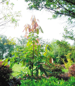 昆明植物园原科研办公楼前的西畴青冈幼树。