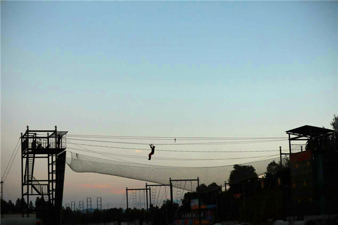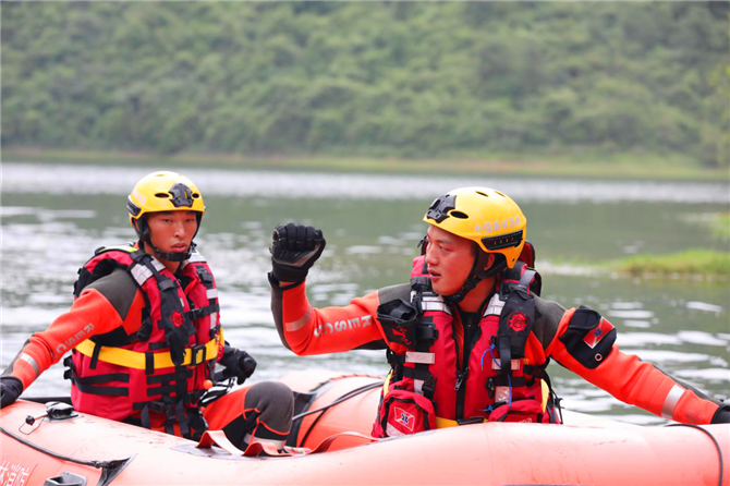 消防指战员通过绳索搭救“被困”河中沙洲的“群众”