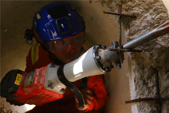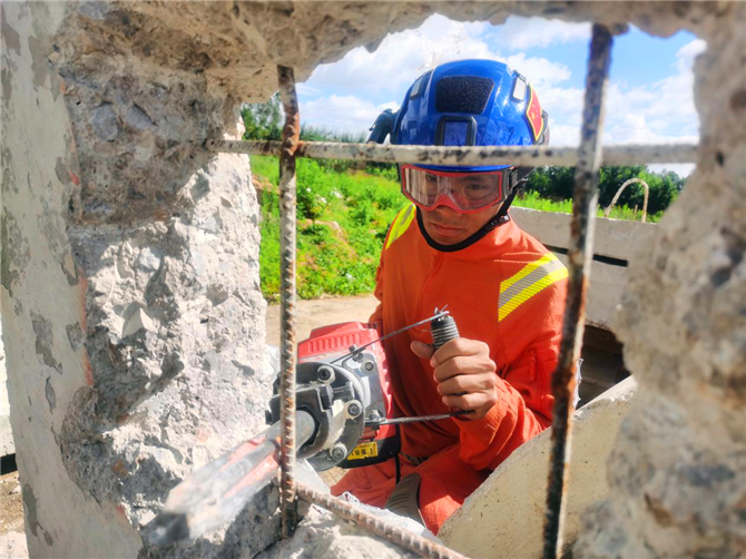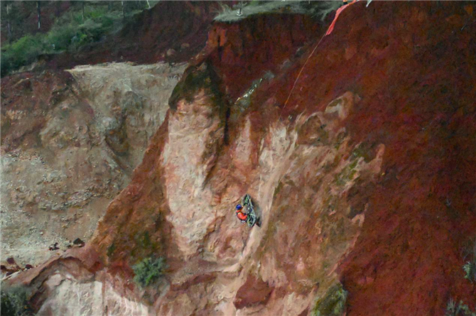 消防指战员利用绳索从悬崖降落,搜寻被困人员