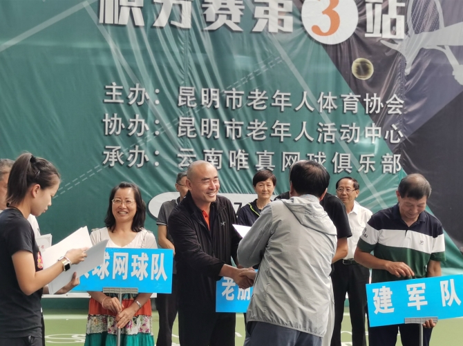 为充分展现广大老年人热爱党、热爱祖国的高昂激情,进一步展现广大老年人追求健康、快乐、美好生活的精神风貌,昆明市老年人体育协会于今年4月至7月在昆明市老年人活动中心举行的2021年昆明市老年网球团体积分赛于7月14日告一段落。当天上午举行的第三阶段老年网球团体积分赛在激烈角逐后,分别胜出第一名、第二名和第三名。