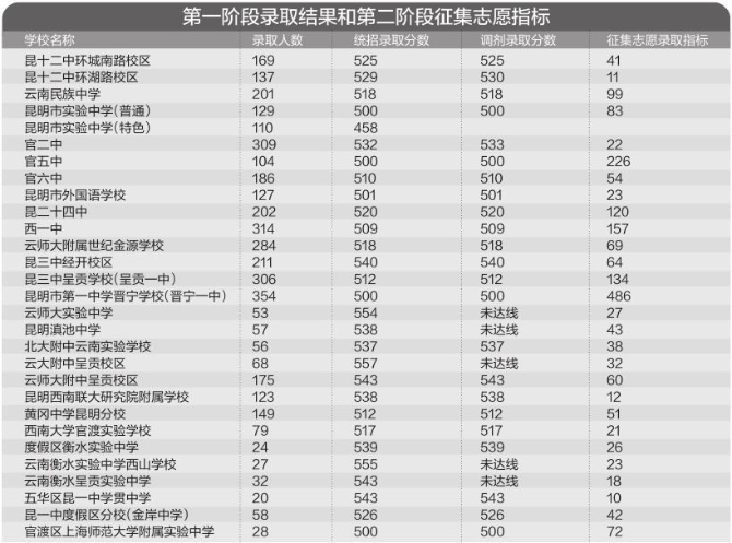 昆明中考第二批次录取线揭晓 第一轮征集志愿录取结果今天下午公布