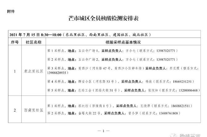 一、检测时间:7月15日、7月16日、7月17日,每日8:30—18:00。(各片区检测日期详见附表)