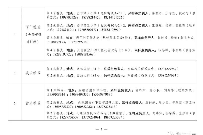 二、采样地点:以居住地社区为单位,由社区负责通知到指定地点采样。