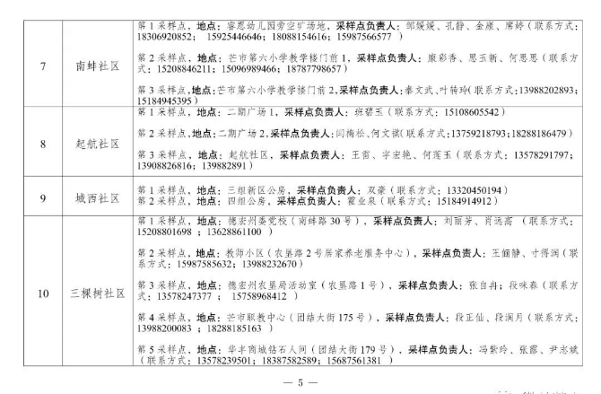 五、请中央、省、州属驻芒市及市直各单位公职人员根据自己居住地所在区域的检测时间,提前向单位进行报备,调整好工作时间和工作安排,按时参加检测。