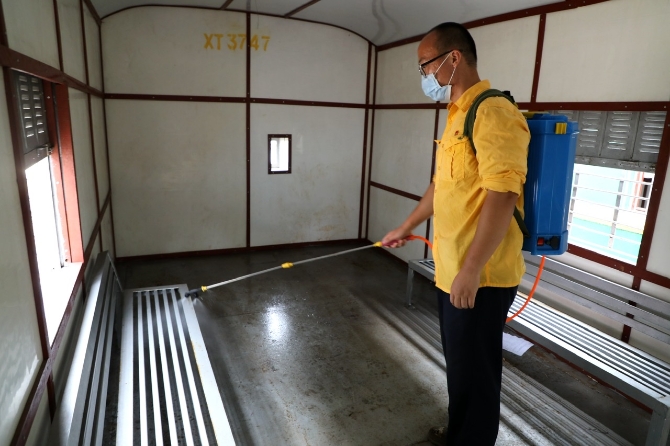 今年以来,为确保国内疫情防控成效,同时保障货物运输稳定,昆明局集团同河口海关、边防、工信、卫健、检验检疫等多个职能部门通过在中越铁路大桥中方端设置查验点,实现入境列车、货物、司乘人员的消、验、测温环节风险前移,杜绝发生偷渡人员爬乘车辆入境情况。执行越方入境人员“一日一检”、车站交接相关人员“三日一检”、站区其他工作人员“一周一检”的核酸检测方案,建设越方人员专用封闭通道及活动区域,采取分时就餐、无接触式通关手续办理等物理隔绝措施,不断完善防控各环节工作,以更为严格的入境物资检查流程,确保病毒不进入、不扩散、不蔓延。