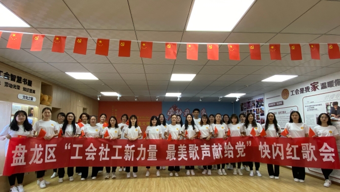 昆明信息港讯 记者李红鸾 为庆祝中国共产党百年华诞暨“七一”建党节,凝聚盘龙区广大干部职工向第二个百年奋斗目标进军的磅礴力量,弘扬党的优良传统,充分展示盘龙社工爱党爱国热情和昂扬向上的青春力量。近日,昆明市盘龙区总工会“红船领航·建党百年工会行”系列活动之“工会社工新力量 最美歌声献给党”红歌快闪活动举行。