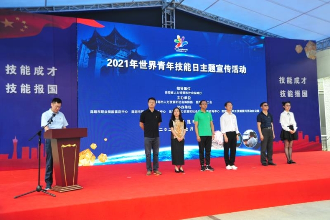 “2021年世界青年技能日主题宣传活动”由云南省人力资源和社会保障厅主办,昆明市人力资源和社会保障局、昆明市总工会承办,主题是“技能成才 技能报国”。