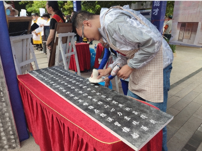 在当天的主题宣传活动上,这些技能人才身披红绶带来到现场,展示其创作的作品和绝技绝活等,并为大家讲述技能成就梦想的故事。比如昆明市从上海引进的石影雕非遗人才钱三毛,带来了他创作的《万里长城》、《毛泽东》、《清明上河图》、《敦煌寻梦》等堪称“永恒的艺术”的作品。其他各展区也分别展出了技能大师们创作的盆景、陶艺、造船等等,均体现出高超的技艺和艺术水平。现场还进行了美容美发、花式调酒、昆明茶艺等技能技艺展演。