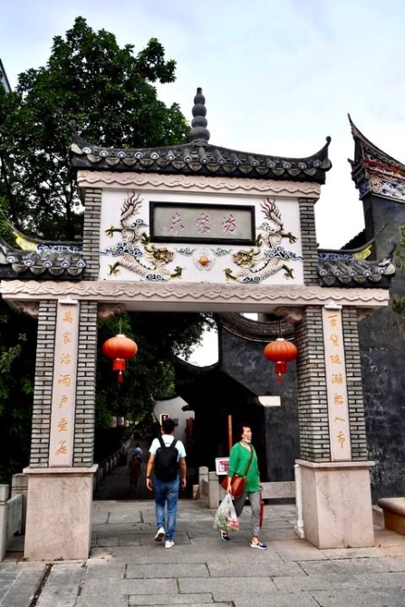 ↑7月14日,行人经过福州朱紫坊牌楼。
