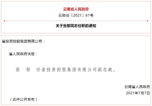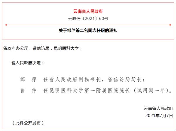 云南省人民政府发布一批任职通知,涉及3名干部