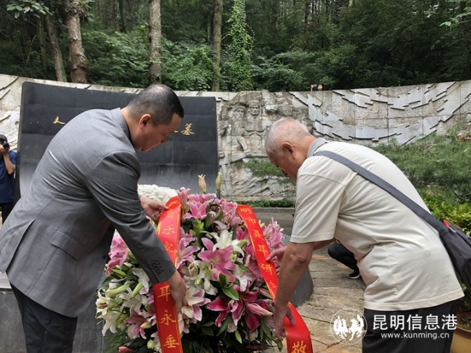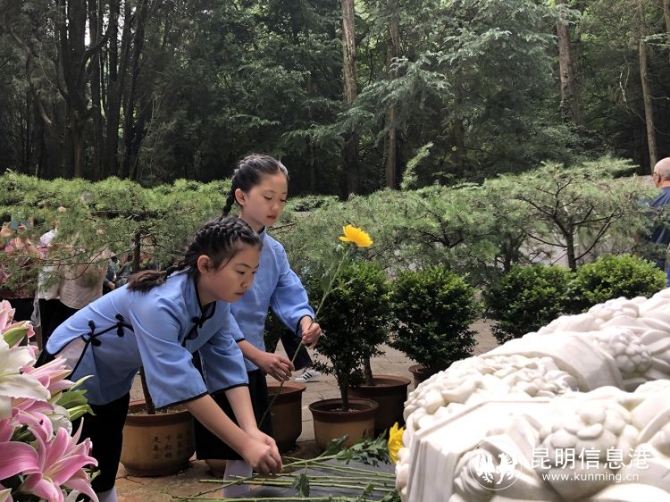 昆明信息港讯 实习记者韩严 7月17日,聂耳的亲属、聂耳母校师生代表、聂耳研究会专家及会员同社会各界代表人士登上西山拜谒聂耳墓,敬献鲜花,缅怀先烈、一起重温革命岁月。