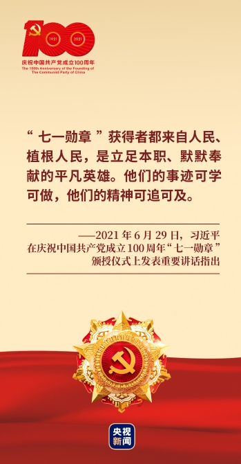 习近平总书记向“七一勋章”获得者颁授勋章,称赞他们是各条战线党员中的杰出代表,“他们的事迹可学可做,他们的精神可追可及。”
