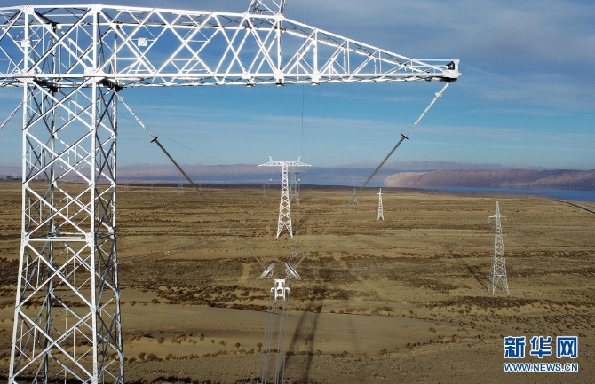 2020年12月27日拍摄的青豫特高压直流工程青海段。新华社发(王国栋 摄)