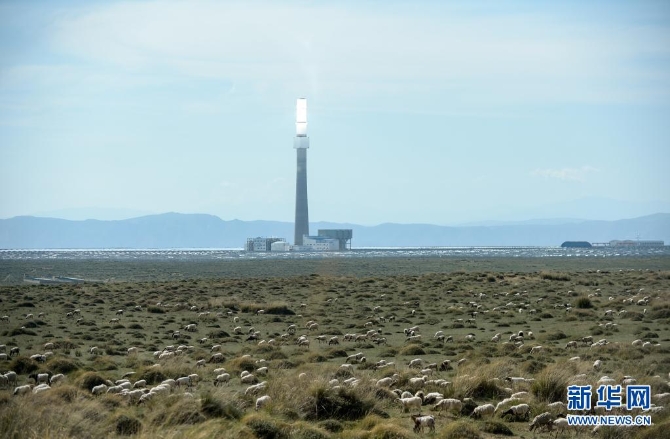 7月8日在青海省海南藏族自治州共和县光伏产业园拍摄的一处塔式光热发电项目。新华社记者 张曼怡 摄
