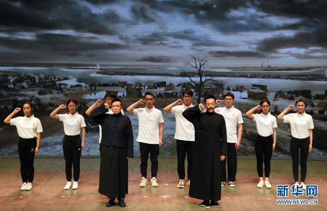 电视剧《觉醒年代》主创团队走进北京大学,剧中主要演员与北大学生同台演出(4月20日摄)。新华社记者 任超 摄