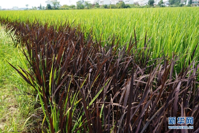 这是7月16日拍摄的江西省南昌县黄马乡郭埠村村民种植的彩色稻 新华社记者 万象 摄