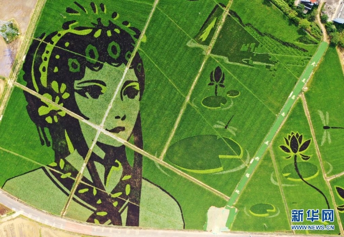 这是7月16日拍摄的彩色稻田画(无人机照片) 新华社记者 万象 摄