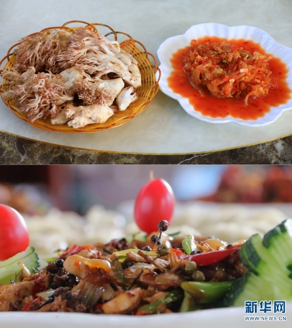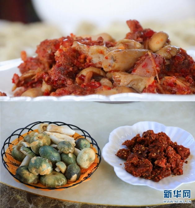 珊瑚菌炒藠头鮓(拼版照片)。新华网发(供图)