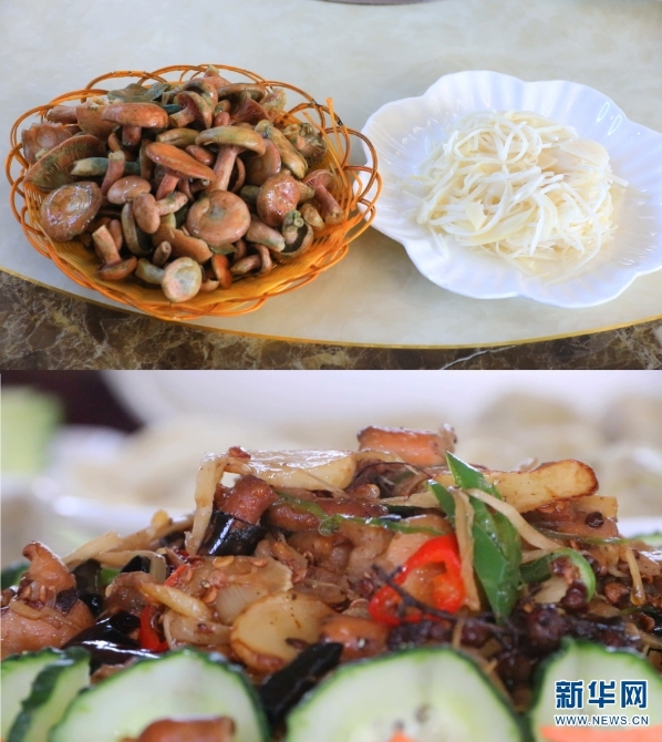 粉菌炒火腿肉(拼版照片)。新华网发(供图)
