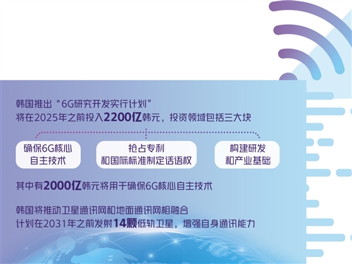 根据韩国科学技术信息通信部公布的“6G研究开发实行计划”,韩国将在2025年之前投入2200亿韩元,投资领域包括确保6G核心自主技术、抢占专利和国际标准制定话语权、构建研发和产业基础三大块内容,以期让韩国成为6G技术的世界顶级强国。
