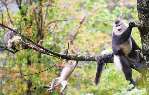香格里拉滇金丝猴国家公园里的滇金丝猴 新华社记者 王长山 摄
