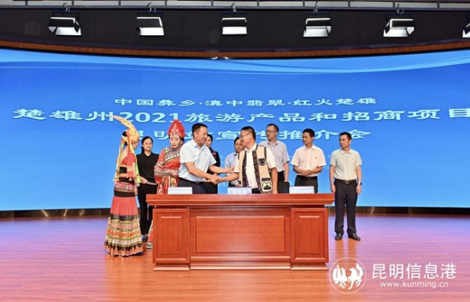 昆明信息港讯 记者张杨 实习生颜畅 为进一步打造大滇西旅游环线新亮点,助推楚雄州文化旅游产业高质量发展,7月20日下午,楚雄州2021旅游产品和招商项目宣传推介会在昆明举行。