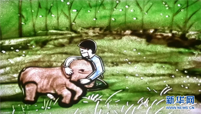 【沙画看大象】再现小象“羊妞”与“象爸”的晨与昏