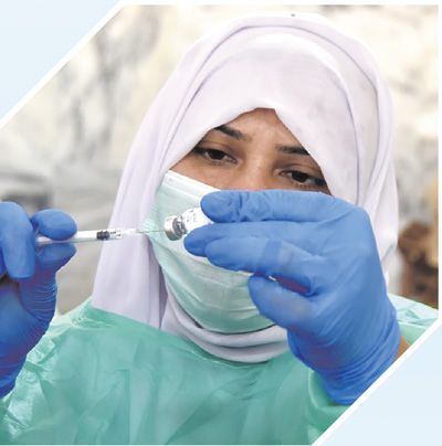 中国向急需国家提供疫苗援助,与各国携手应对新冠肺炎疫情挑战。在收到中国援助的新冠疫苗后,巴基斯坦于2月初启动疫苗接种行动。图为3月10日,一名医务人员正在进行疫苗接种准备工作。 新华社发