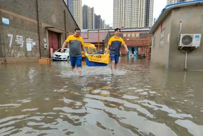 面对暴雨,河南邮政快递妥善存放邮件,筹集公益基金,并积极组织人员参加抗汛救灾工作。申通、中通、顺丰等快递公司通过捐款、采购物资等方式全力支援救助受灾群众。
