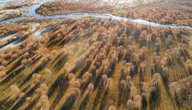 这是2019年12月8日拍摄的雅鲁藏布江两岸美景(无人机照片)。新华社记者 普布扎西 摄