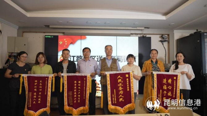 昆明信息港讯 记者李红鸾 通讯员李文品 7月23日,盘龙区金江路社区5名居民代表把4面大红锦旗送到了盘龙区水务局。“我们金康园属于老旧小区,22年来地下排水管道从来没有人清掏过,这次水务局不仅帮我们清掏了管道,还帮社区拓宽了道路,增加了绿化”社区居民代表心怀感激的说着。