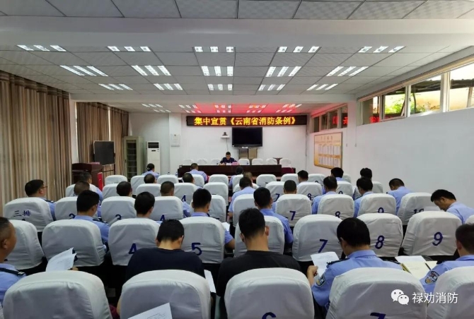 向全体参训人员宣贯了《中华人民共和国消防法》、《云南省消防安全责任制实施办法》、《云南省消防条例》,重点讲解了责任制的主要内容和公安派出所执法权限等内容。