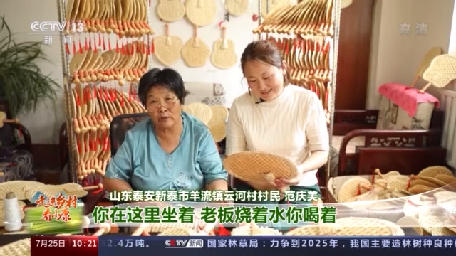 山东泰安新泰市羊流镇云河村村民 张林萍:奶奶们是非常辛苦的,就是为了给她们解忧,我们才开始想办法,找渠道做直播,来帮她们卖这个扇子,让她们能有活干。干的活有销路,销出去的东西她们很高兴的。客户有好评,有时候给她们说一下,今天扇子人家说你们做得非常好,这个奶奶就很高兴,好几天都会回忆这个事情。