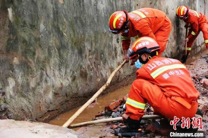 7月24日下午,来自山西太原、晋中两地的消防指战员前往板棚村,清掏村内道路两侧排水沟渠杂物。