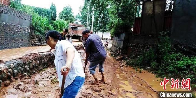“眼睁睁地看着村里的排水沟渠堵了,部分道路积水深度过了膝盖,村民这才感觉到坐不住了。”商彩锋告诉中新网记者,暴雨过后,村里道路上的淤泥都能没过膝盖,而且淤泥中有大量碎石,用铁锹很难铲起,必须用铲车清理,可想而知这次暴雨引发的洪水有多大。