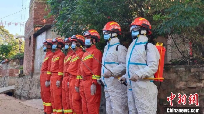 7月25日下午,山西晋中市消防救援支队副支队长兼灭火救援指挥部部长杨英带领消防员二次前往板棚村。这一次,消防员带着临时购买的两个背负式喷雾器和药剂,对该村道路沿线特别是排水沟渠进行消杀作业。