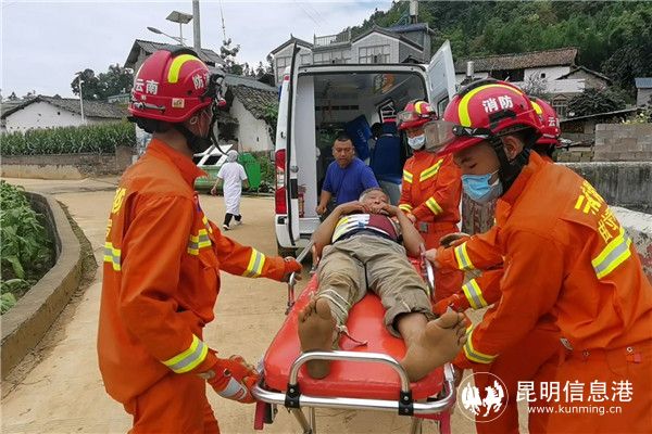 昆明信息港讯 记者劳学丽 通讯员吴城松 张锦益 7月24日10时55分,曲靖市罗平县消防救援大队接到报警称,罗平县板桥镇舍邦歹村委会一老人受伤被困山顶,现场群众没有工具无法转移,情况紧急之下拨打119电话求助。随后,九龙大道消防救援站立即出动1车7人前往处置。