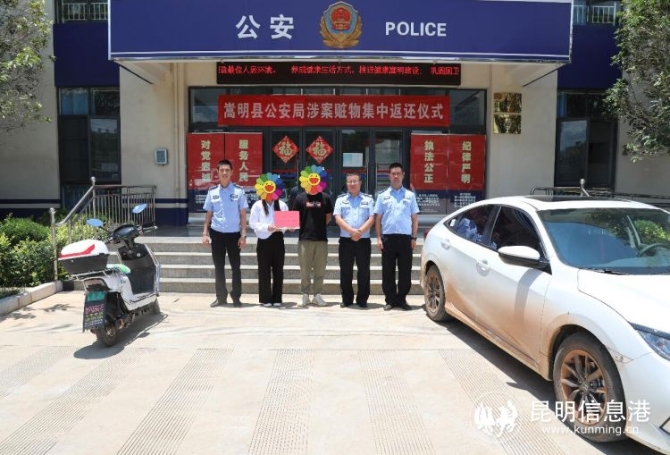 昆明信息港讯 记者合宇聪 7月26日,嵩明县公安局举行涉案赃款赃物集中返还仪式,将近期追回的20余万元涉案财物返还给受害群众。