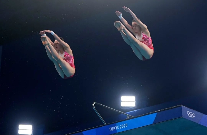 中国选手张家齐/陈芋汐获得东京奥运会女子双人10米台冠军。