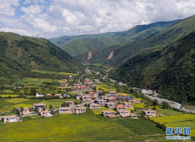7月25日拍摄的道孚县鲜水镇风光(无人机照片)。新华社记者 江宏景 摄