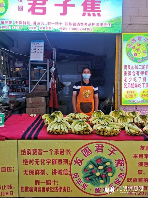 民以食为天,食品安全是所有消费者关心的问题。近日,记者发现,在篆新农贸市场内,一家店名为“友圆君子焦”的商家打出了绝对无化学催熟剂、无保鲜剂、假一赔十的承诺,店上顾客络绎不绝,好评如潮。出于好奇,记者向消费者王阿姨了解到,原来店内的香蕉全部出自“君子蕉之父”——古朝友之手,其口感香甜软糯,味道浓郁,跟市面上一些用乙烯和甲醛催熟的香蕉口感完全不一样。