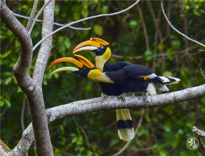 “在这里,可以观测到双角犀鸟、冠斑犀鸟、白喉犀鸟、棕颈犀鸟、花冠皱盔犀鸟共5种犀鸟。”来自北京林业大学的教授、博士生导师陈建伟说,犀鸟是一种奇特而珍贵的大型鸟类,主要分布于非洲及亚洲南部。犀鸟有“爱情鸟”之称,雌雄犀鸟结对后,遵循“一夫一妻”制,一旦雌性犀鸟受孕,便再不出洞,在里面繁殖下一代,雄鸟则白天觅食投喂雌鸟,晚上守护在洞口。