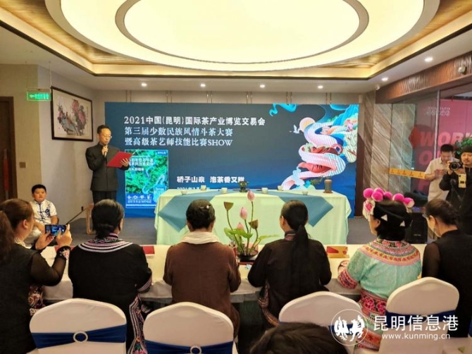 昆明信息港讯 记者杨雁 在斗茶赛比赛区,专家评委们认真地对入围决赛的茶样随机编码,根据茶品色香味形进行专业评审和现场打分;在另一侧的民族茶艺师赛的展台上,则是云南各少数民族茶艺茶道技艺的精彩比拼。7月28日,2021中国昆明(国际)茶产业博览交易会第三届少数民族风情斗茶大赛暨民族茶艺师大赛在昆明益源堂茶疗养生主题会馆举行。