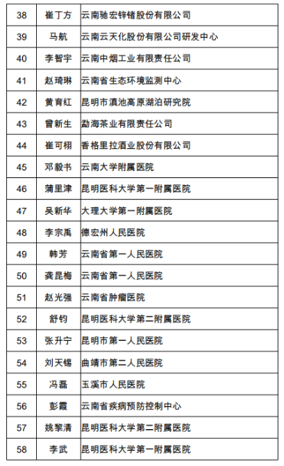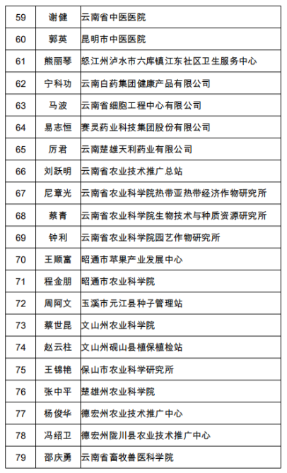 2021年拟享受云南省政府特殊津贴人选名单(100人)