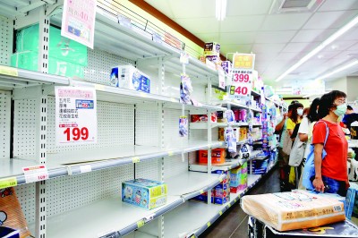 5月15日,因为疫情恶化,台北市许多卖场出现抢购人潮,生活物资被抢购一空。资料图片