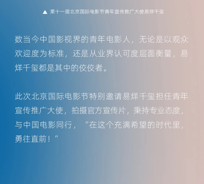 易烊千玺担任第十一届北京国际电影节青年宣传推广大使